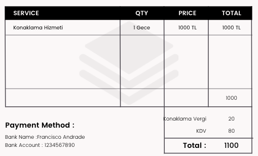 Konaklama vergisi fatura örneği